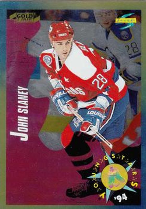 The John Slaney 1994 Score #262 Gold Line card is 1 of 4 John Slaney's card variations in the 1994 Score set being tracked by Sports Card Investor, including Base, Gold Line - Punched, and Platinum.