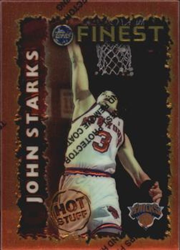 The John Starks 1995 Topps Finest #HS10 Hot Stuff card is 1 of 6 John Starks' card variations in the 1995 Topps Finest set being tracked by Sports Card Investor, including Base, Refractor, Mystery, Mystery - Borderless Gold Refractor, and Mystery - Borderless Silver.