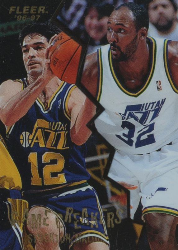 1996-97 FLEER GAME BREAKERS JOHN STOCKTON / KARL MALONE JAZZ INSERT CARD #15