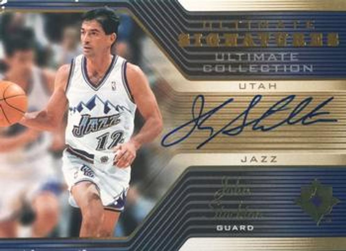 The John Stockton 2004 Upper Deck Ultimate Collection #US-JS Signatures card is 1 of 16 John Stockton's card variations in the 2004 Upper Deck Ultimate Collection set being tracked by Sports Card Investor, including Base /750, Limited /25, Spectrum /1, Game Jerseys /175, and Game Patches /100.