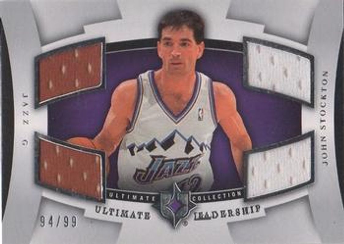 The John Stockton 2007 Upper Deck Ultimate Collection #UL-JS Ultimate Leadership /99 card is 1 of 10 John Stockton's card variations in the 2007 Upper Deck Ultimate Collection set being tracked by Sports Card Investor, including Ultimate Materials, Ultimate Materials Autographs, Ultimate Leadership Gold /50, Ultimate Materials Gold /50, and Ultimate Commitment /25.