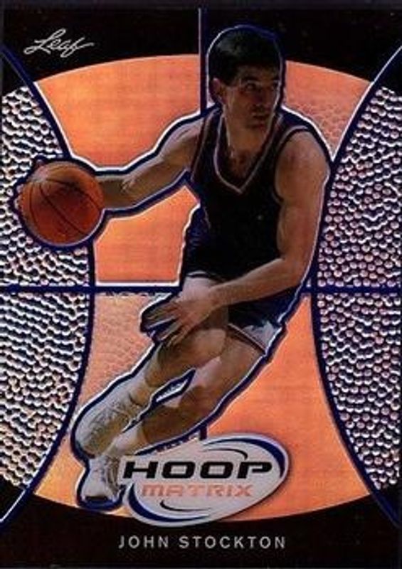 The John Stockton 2012 Leaf Metal #HM-JS1 Hoop Matrix - Orange /1 card is 1 of 29 John Stockton's card variations in the 2012 Leaf Metal set being tracked by Sports Card Investor, including Base, Holo /50, Holo Blue /25, Holo Green /10, and Holo Red /5.