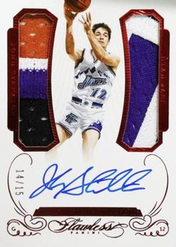 John Stockton 2014 Flawless #GDM-JS Greats Dual Memorabilia Autographs - Ruby /15 RAW Price Guide