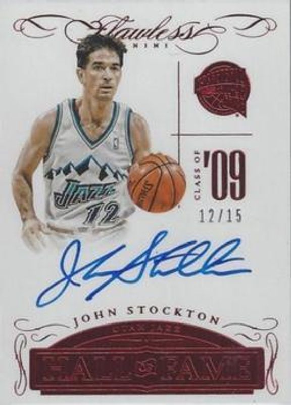 John Stockton 2014 Flawless #HOF-JS Hall of Fame Autographs - Ruby /15 RAW Price Guide