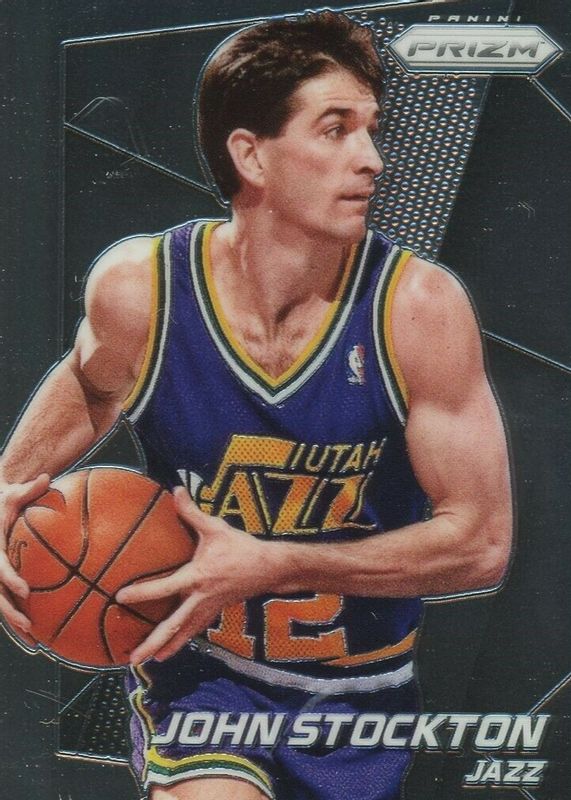 This card is 1 of 18 John Stockton's card variations in the 2014 Prizm set being tracked by Sports Card Investor, including Blue Green Mosaic, Blue Mojo, Blue Wave, Green, and Red White Blue Pulsar.
