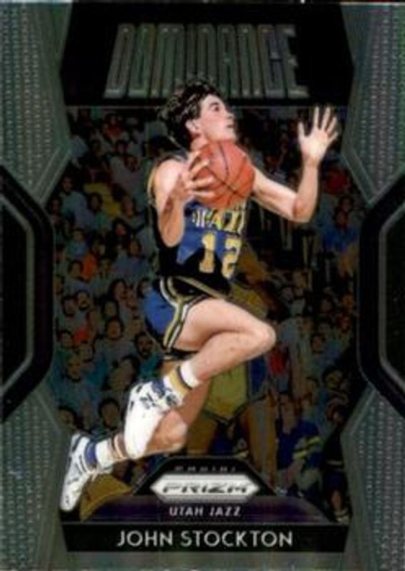 The John Stockton 2018 Prizm #15 Dominance card is 1 of 47 John Stockton's card variations in the 2018 Prizm set being tracked by Sports Card Investor, including Base, Choice Blue Yellow Green, Fast Break, Green, and Red Ice.