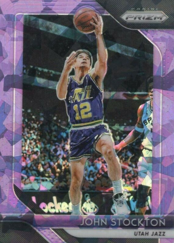 2018-19 Panini Prizm John Stockton Prizm Purple Ice #39/149 #185 Jazz