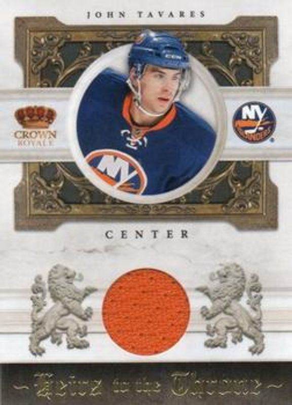 The John Tavares 2010 Crown Royale #JT Heirs to the Throne Materials /250 card is 1 of 13 John Tavares' card variations in the 2010 Crown Royale set being tracked by Sports Card Investor, including Base /499, Premiere Date /100, Purple /25, Red /1, and Premiere Date Signatures /100.