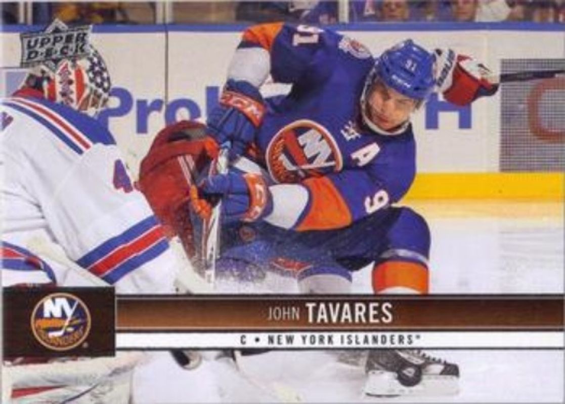 The John Tavares 2012 Upper Deck #116 Base card is 1 of 6 John Tavares' card variations in the 2012 Upper Deck set being tracked by Sports Card Investor, including UD Exclusives /100, UD Exclusives Spectrum /10, 2012 Upper Deck MVP, Requisite Radiance, and UD Canvas.