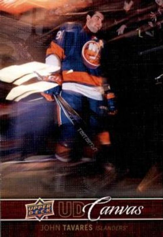 The John Tavares 2012 Upper Deck #C54 UD Canvas card is 1 of 6 John Tavares' card variations in the 2012 Upper Deck set being tracked by Sports Card Investor, including Base, UD Exclusives /100, UD Exclusives Spectrum /10, 2012 Upper Deck MVP, and Requisite Radiance.