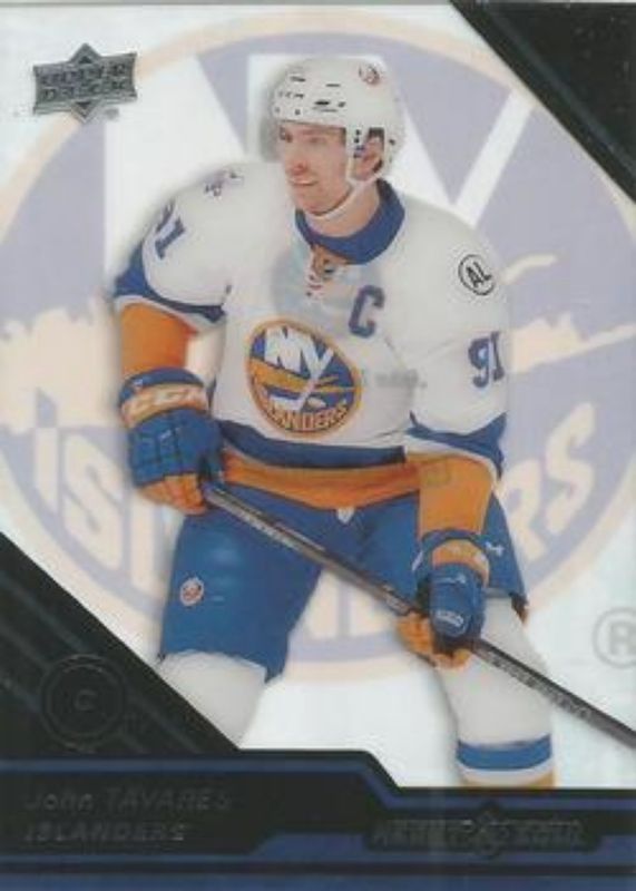 The John Tavares 2016 Upper Deck Compendium #HS-5 Heart & Soul card is 1 of 8 John Tavares' card variations in the 2016 Upper Deck Compendium set being tracked by Sports Card Investor, including Blue, Gold, Red, Printing Plates Black /1, and Printing Plates Cyan /1.