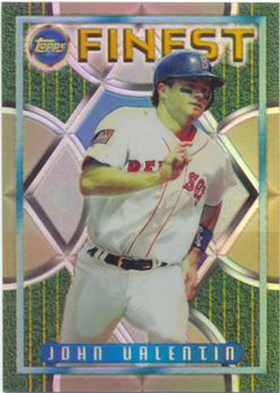 The John Valentin 1995 Topps Finest #53 Refractor card is 1 of 2 John Valentin's card variations in the 1995 Topps Finest set being tracked by Sports Card Investor, including Base.