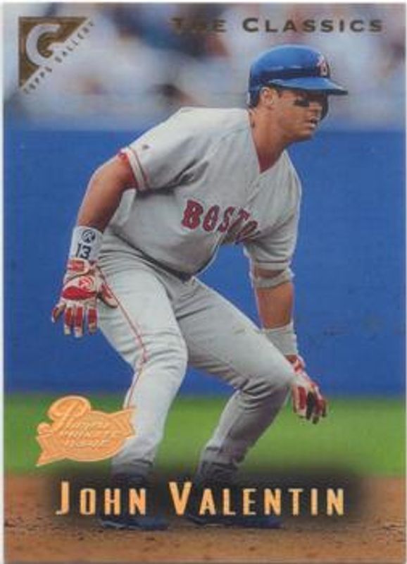 The John Valentin 1996 Topps Gallery #12 Player's Private Issue /999 card is 1 of 2 John Valentin's card variations in the 1996 Topps Gallery set being tracked by Sports Card Investor, including Base.