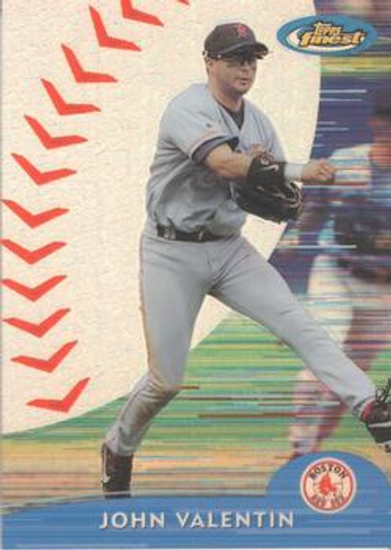 The John Valentin 2000 Topps Finest #159 Refractor /1000 card is 1 of 3 John Valentin's card variations in the 2000 Topps Finest set being tracked by Sports Card Investor, including Base, and Gold Refractor /100.