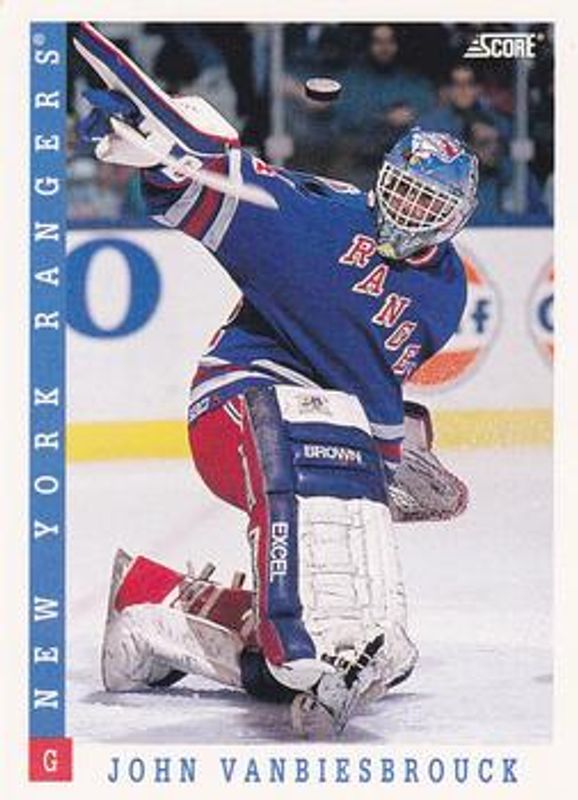 The John Vanbiesbrouck 1993 Score #162 Base card is 1 of 6 John Vanbiesbrouck's card variations in the 1993 Score set being tracked by Sports Card Investor, including #445 Base, #491 Base, #492 Base, #501 Base, and #501 Gold Rush.