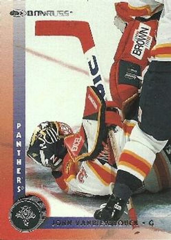 The John Vanbiesbrouck 1997 Donruss #58 Base card is 1 of 6 John Vanbiesbrouck's card variations in the 1997 Donruss set being tracked by Sports Card Investor, including Between the Pipes Promos, Press Proof Gold, Press Proof Silver, Between The Pipes /3500, and Elite Series /2500.