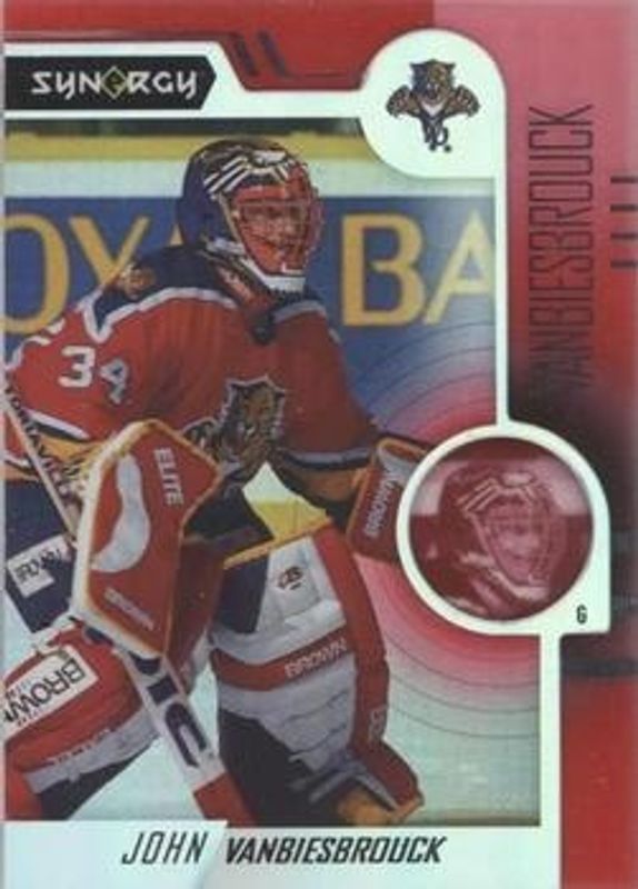 The John Vanbiesbrouck 2022 Upper Deck Synergy #65 Red card is 1 of 5 John Vanbiesbrouck's card variations in the 2022 Upper Deck Synergy set being tracked by Sports Card Investor, including Base /23, Red Codes, Purple /49, and Gold /25.