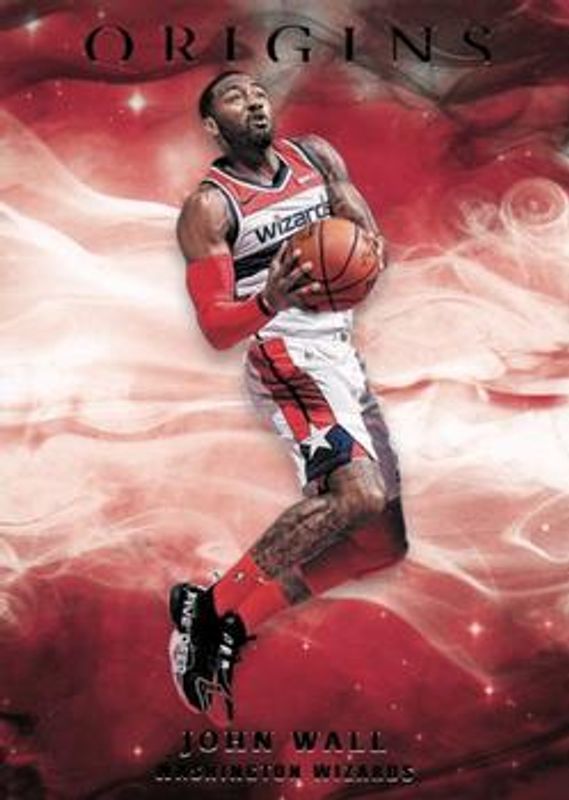 The John Wall 2019 Origins #54 Base card is 1 of 17 John Wall's card variations in the 2019 Origins set being tracked by Sports Card Investor, including Red, Blue /99, Orange /75, Pink /35, and Turquoise /25.