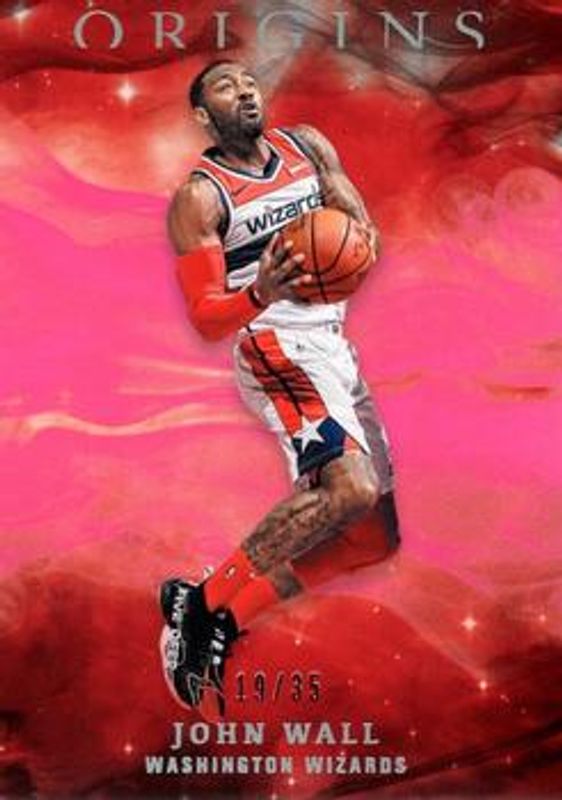 The John Wall 2019 Origins #54 Pink /35 card is 1 of 17 John Wall's card variations in the 2019 Origins set being tracked by Sports Card Investor, including Base, Red, Blue /99, Orange /75, and Turquoise /25.