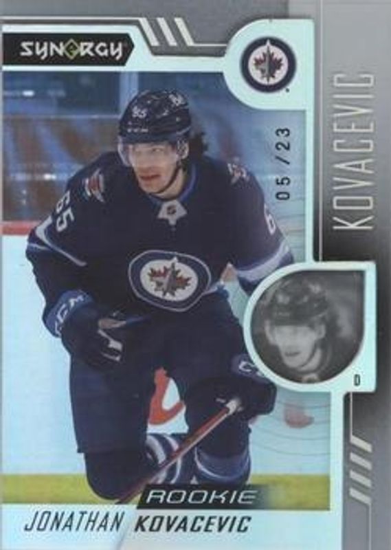 The Johnathan Kovacevic 2022 Upper Deck Synergy #113 Base /23 Rookie card is 1 of 13 Johnathan Kovacevic's card variations in the 2022 Upper Deck Synergy set being tracked by Sports Card Investor, including Red, Red Codes, Purple /49, Gold /25, and Cranked Up /699.