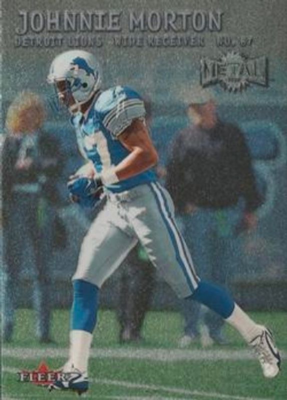 The Johnnie Morton 2000 Metal #151 Base card is 1 of 2 Johnnie Morton's card variations in the 2000 Metal set being tracked by Sports Card Investor, including Emerald.