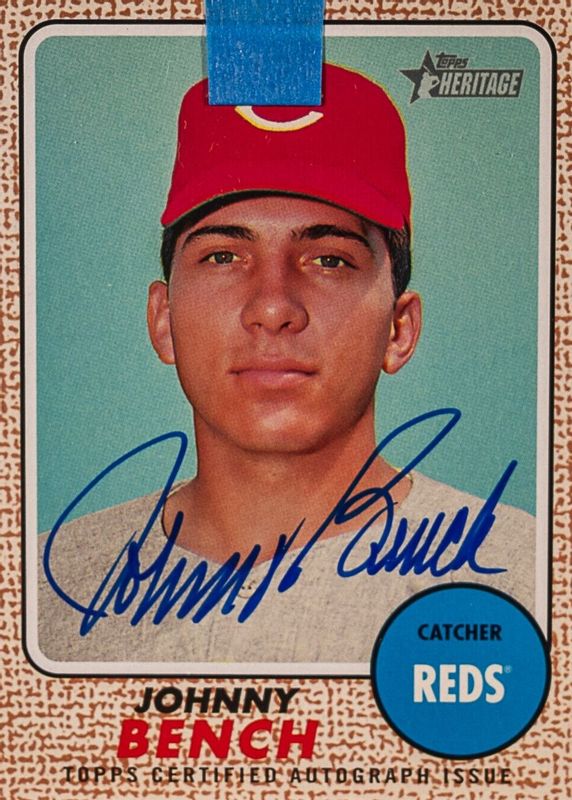 This card is 1 of 2 Johnny Bench's card variations in the 2017 Topps Heritage set being tracked by Sports Card Investor, including Real One Autographs - Red Ink /25.