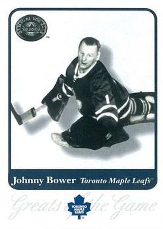 Johnny Bower's Hockey cards are available in at least 118 sets. Johnny Bower's biggest 7-day price movers are 2001 Fleer Greats of the Game #14 Base, 2001 Fleer Greats of the Game Autographs, and 2018 Upper Deck The Cup #CHRONO-1 Chronology - Printing Plates Cyan /1.