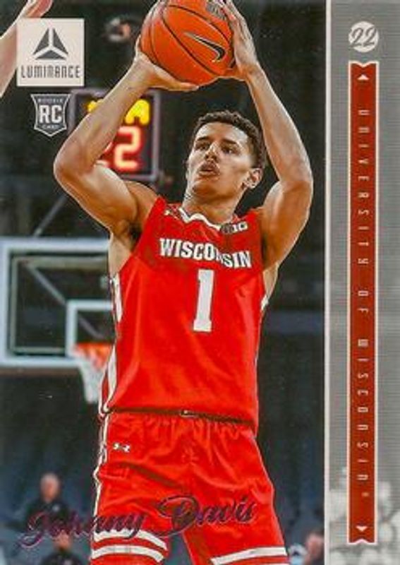 The Johnny Davis 2022 Chronicles Draft Picks #14 Luminance - Pink Rookie card is 1 of 215 Johnny Davis' card variations in the 2022 Chronicles Draft Picks set being tracked by Sports Card Investor, including Base, Black, Bronze, Pink, and Pulsar.