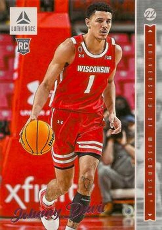 The Johnny Davis 2022 Chronicles Draft Picks #39 Luminance - Pink Rookie card is 1 of 215 Johnny Davis' card variations in the 2022 Chronicles Draft Picks set being tracked by Sports Card Investor, including Base, Black, Bronze, Pink, and Pulsar.