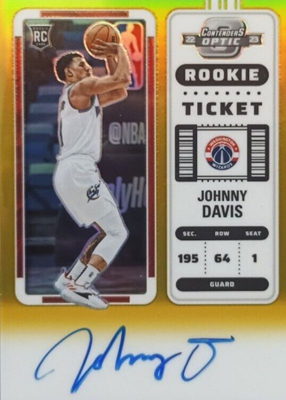 JOHNNY DAVIS 2022-23 Contenders Optic #107 RC Rookie Ticket Auto /10 Gold Prizm