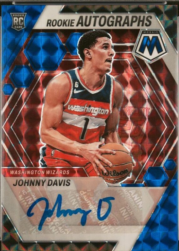 This card is 1 of 12 Johnny Davis' card variations in the 2022 Mosaic set being tracked by Sports Card Investor, including Fast Break Autographs, Rookie Autographs - Choice, Rookie Autographs - Red Wave, Fast Break Autographs - Red /49, and Rookie Autographs - Blue /49.
