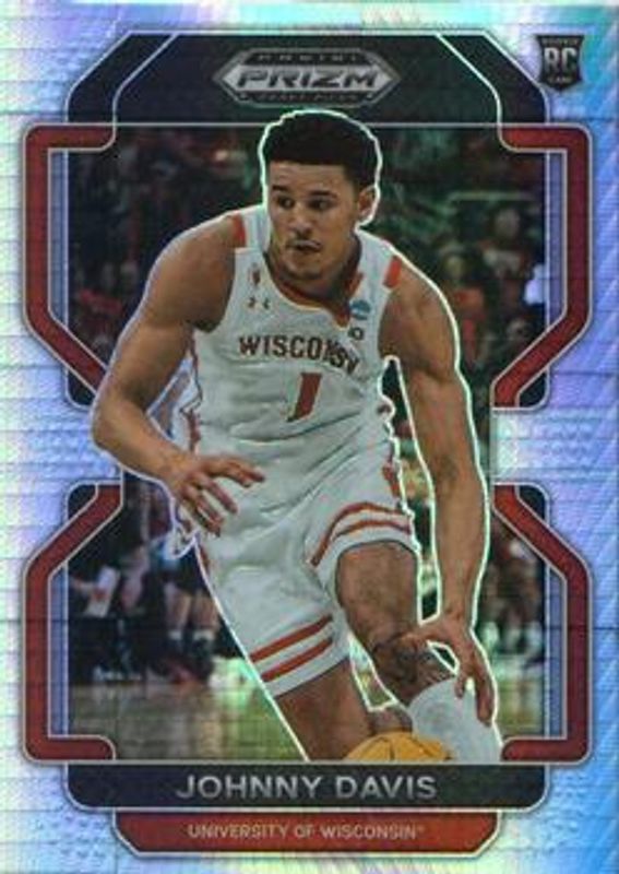 The Johnny Davis 2022 Prizm Draft Picks #59 Hyper Rookie card is 1 of 139 Johnny Davis' card variations in the 2022 Prizm Draft Picks set being tracked by Sports Card Investor, including #59 Base, #59b Base, #59 Blue Circles, #59b Choice Blue Yellow & Green, and #59 Choice Blue Yellow & Green.