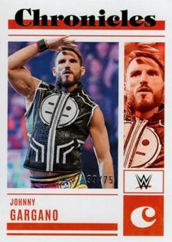 The Johnny Gargano 2023 Chronicles WWE #1 Green /75 card is 1 of 19 Johnny Gargano's card variations in the 2023 Chronicles WWE set being tracked by Sports Card Investor, including Base, Bronze, Pink /199, Red /199, and Blue /99.