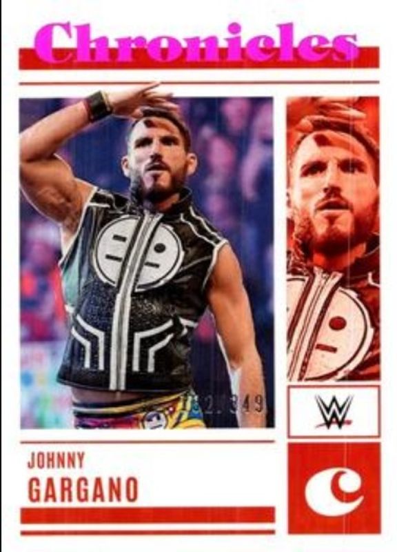The Johnny Gargano 2023 Chronicles WWE #1 Pink /199 card is 1 of 19 Johnny Gargano's card variations in the 2023 Chronicles WWE set being tracked by Sports Card Investor, including Base, Bronze, Red /199, Blue /99, and Green /75.