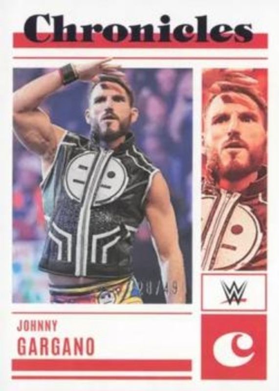 The Johnny Gargano 2023 Chronicles WWE #1 Purple /49 card is 1 of 19 Johnny Gargano's card variations in the 2023 Chronicles WWE set being tracked by Sports Card Investor, including Base, Bronze, Pink /199, Red /199, and Blue /99.
