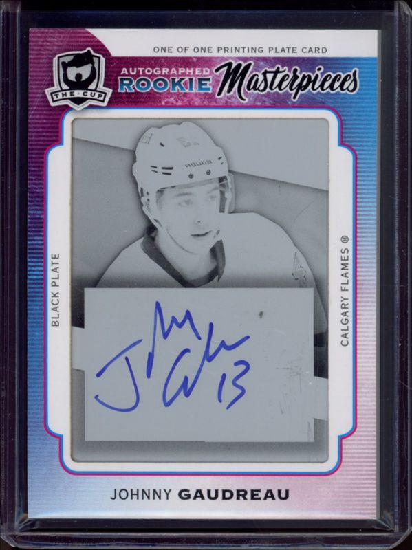 The Johnny Gaudreau 2014 Upper Deck The Cup #PREM-86 Printing Plates Upper Deck Premier - Black /1 Rookie card is 1 of 81 Johnny Gaudreau's card variations in the 2014 Upper Deck The Cup set being tracked by Sports Card Investor, including Base /249, Artist Proof Limited Logos, Gold Spectrum Autographs /25, Gold /10, and Gold Foil /10.