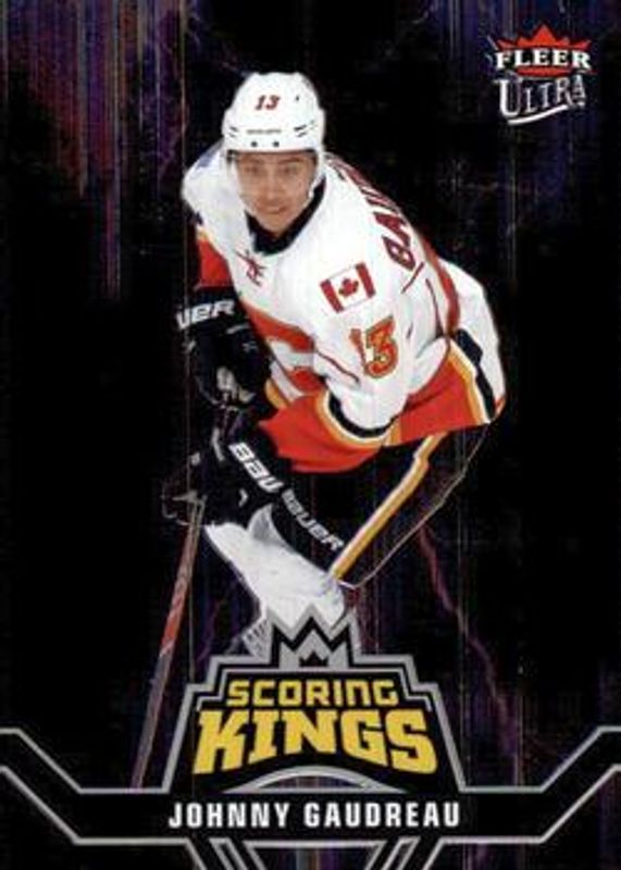 The Johnny Gaudreau 2016 Fleer Showcase #SK13 Ultra Scoring Kings card is 1 of 18 Johnny Gaudreau's card variations in the 2016 Fleer Showcase set being tracked by Sports Card Investor, including #34 Base /399, #121 Base /399, #34 Red Glow /25, #121 Red Glow /25, and #121 White Hot /5.