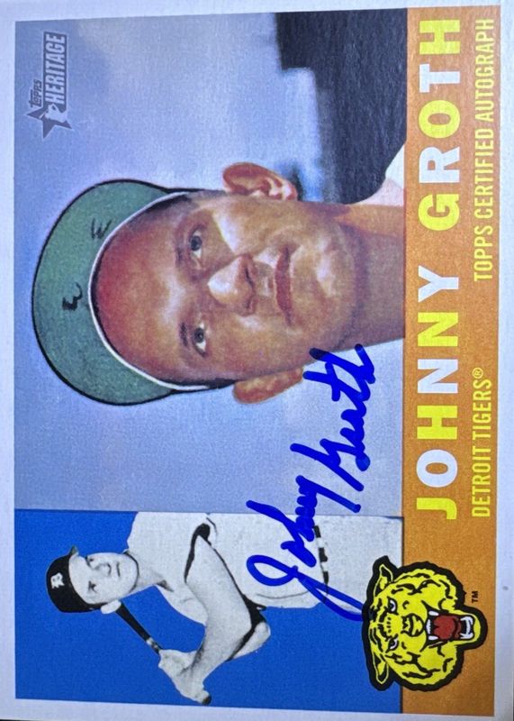 This card is 1 of 6 Johnny Groth's card variations in the 2009 Topps Heritage set being tracked by Sports Card Investor, including #171 50th Anniversary Buybacks, #JG Flashback Stadium Relics Autographs, #JG Real One Autographs - Red Ink /60, #ROA-JG Real One Autographs - Red Ink /60, and #FBA-JG Flashbacks Autographs /25.