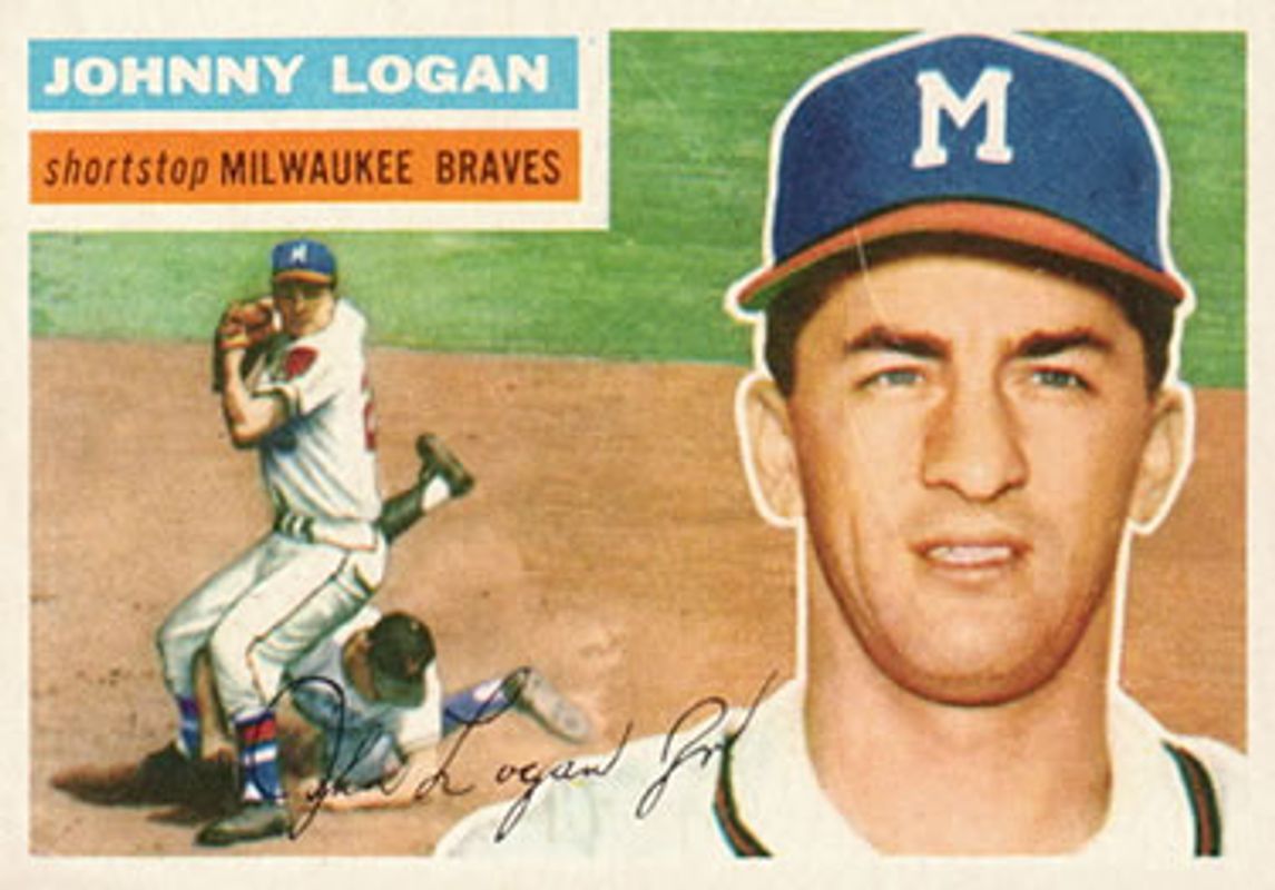 The Johnny Logan 1956 Topps #136b Base card is 1 of 2 Johnny Logan's card variations in the 1956 Topps set being tracked by Sports Card Investor, including Base.