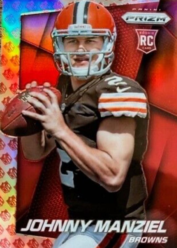 The Johnny Manziel 2014 Prizm #287 NFL Shield Logo /75 Rookie card in Raw condition has not changed in price in the last 30 days and was last sold for $20.00 .