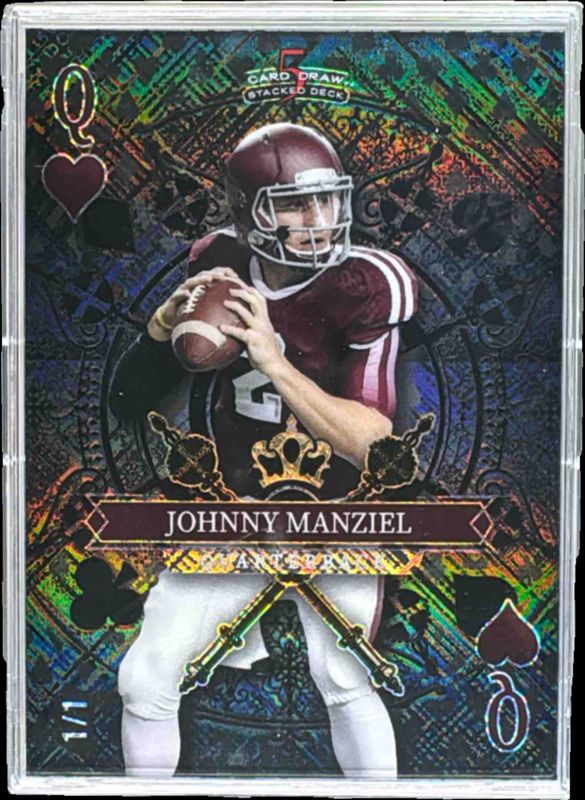 Johnny Manziel 2024 Wild Card 5 Card Draw Stacked Deck Promo #SDPH-JMN 2Up Queen Rainbow Heart Gold /1 RAW Price Guide