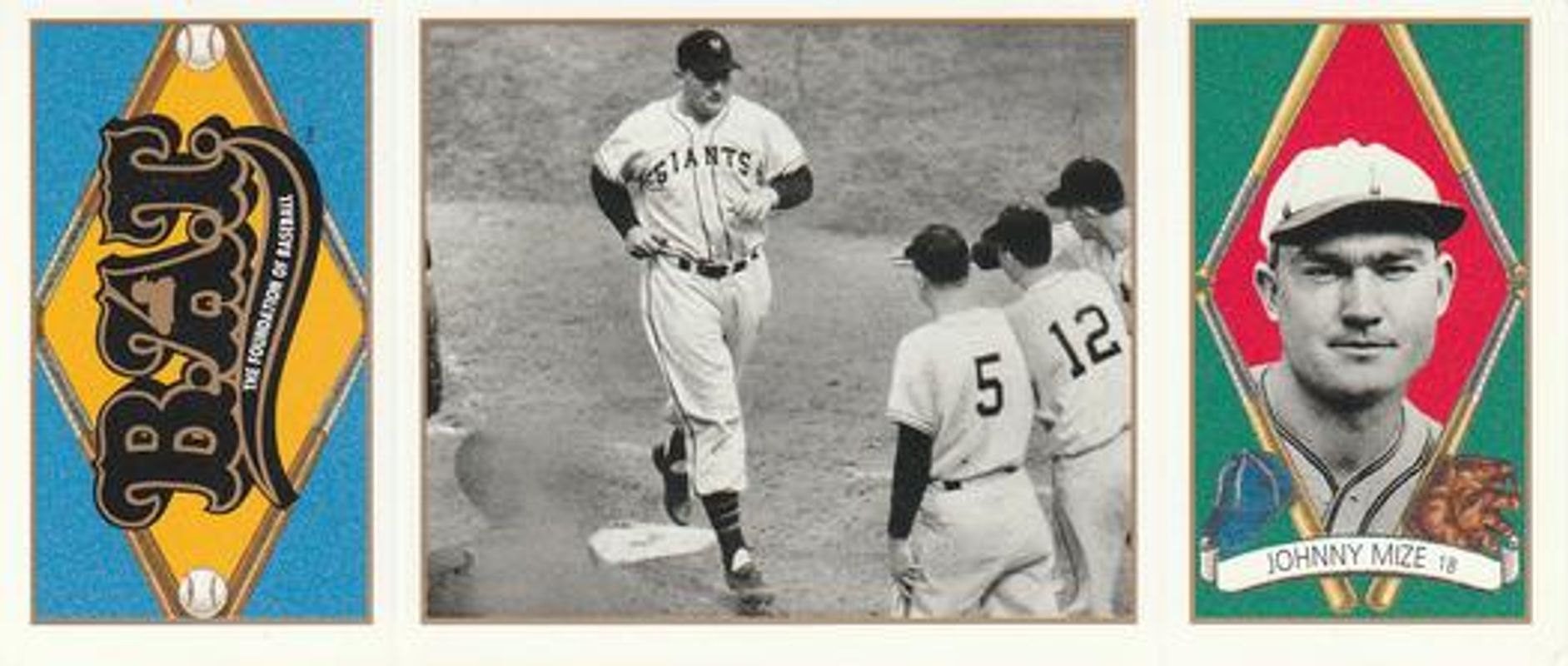 Other popular players in the 1993 Upper Deck All-Time Heroes set include Babe Ruth / Lou Gehrig / Mickey Mantle / Reggie Jackson, Babe Ruth / Hank Aaron / Willie Mays, Christy Mathewson / Cy Young / Joe Wood, Billy Martin / Mickey Mantle / Whitey Ford, and Bobby Thomson / Monte Irvin / Willie Mays.