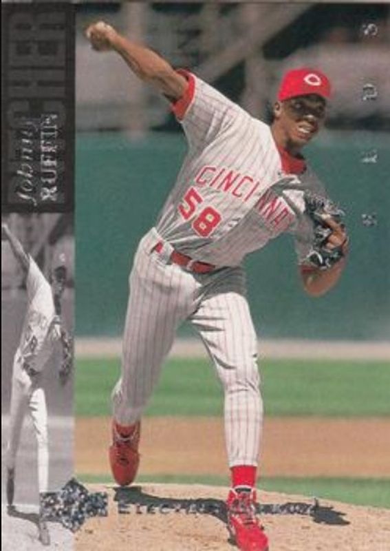 The Johnny Ruffin 1994 Upper Deck #170 Electric Diamond Rookie card is 1 of 2 Johnny Ruffin's card variations in the 1994 Upper Deck set being tracked by Sports Card Investor, including Base.