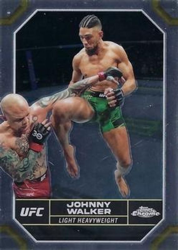 The Johnny Walker 2024 Topps Chrome UFC #96 Base card is 1 of 33 Johnny Walker's card variations in the 2024 Topps Chrome UFC set being tracked by Sports Card Investor, including Magenta Refractor, Negative Refractor, Prism Refractor, Purple Refractor, and Refractor.