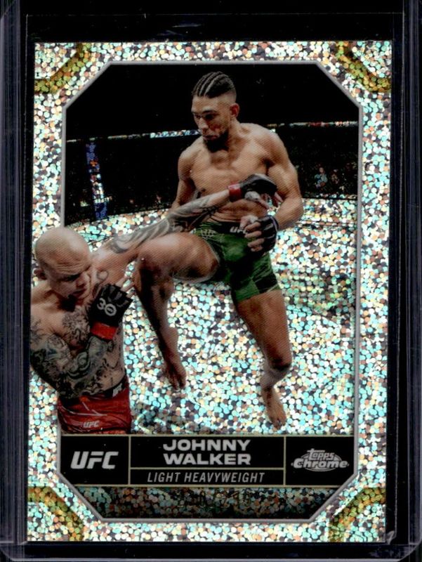 The Johnny Walker 2024 Topps Chrome UFC #96 Speckle Refractor /299 card is 1 of 33 Johnny Walker's card variations in the 2024 Topps Chrome UFC set being tracked by Sports Card Investor, including Base, Magenta Refractor, Negative Refractor, Prism Refractor, and Purple Refractor.
