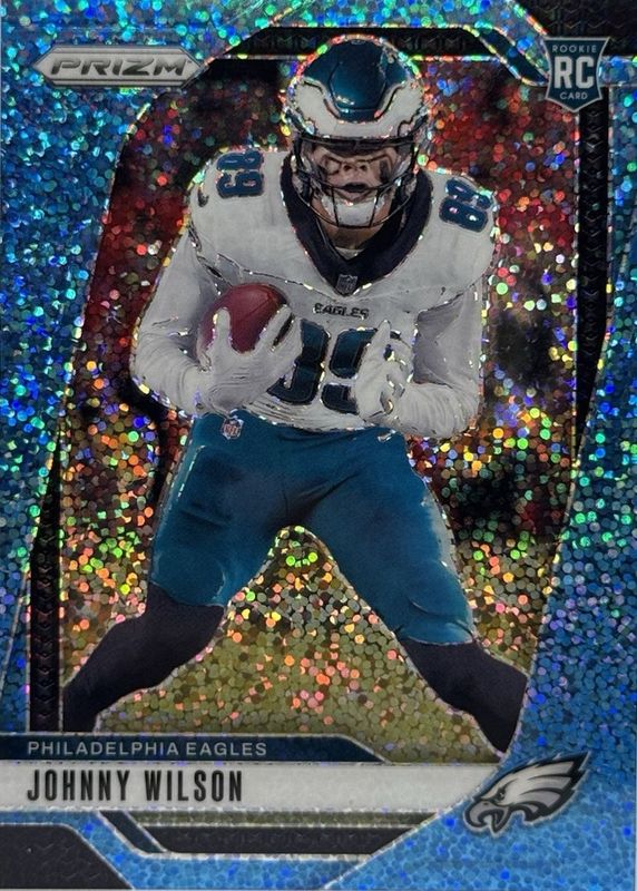 2024 Panini Prizm - Rookies Johnny Wilson #355 Blue Sparkle /96 Eagles