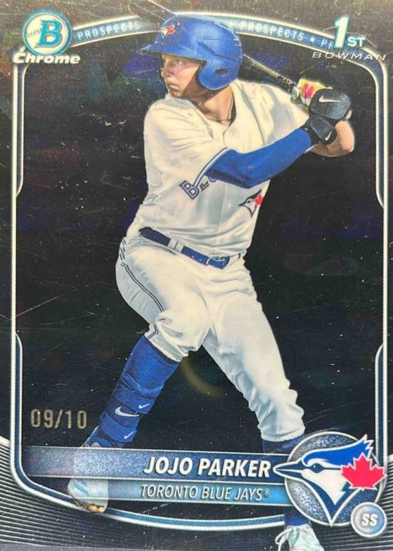 The JoJo Parker 2025 Bowman Draft #BDC-8 Chrome - Black Refractor /10 (1st) card in Raw condition has not changed in price in the last 30 days and was last sold for $422.00 .