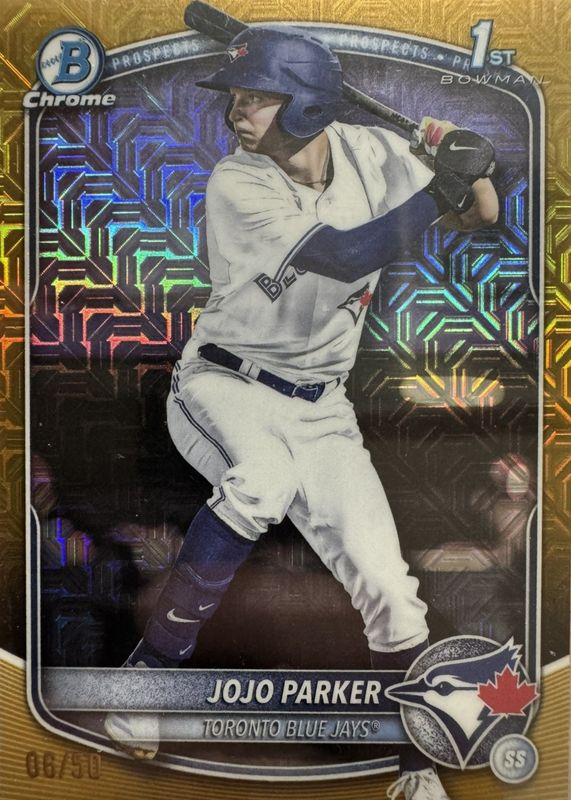 The JoJo Parker 2025 Bowman Draft Mega Box #BDC-8 Chrome - Gold Mega Refractor /50 (1st) card in Raw condition has moved down -$49.99 (-45.4%) in the last 30 days and was last sold for $60.00 .