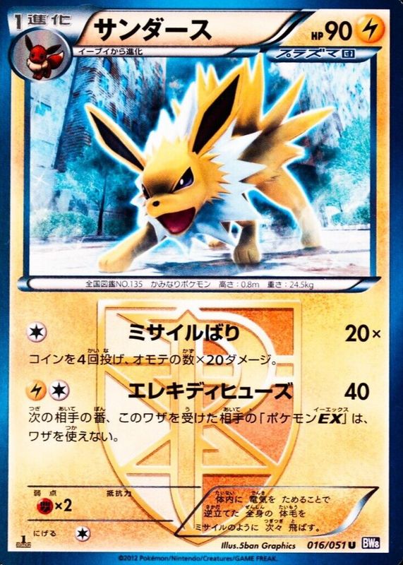 Jolteon 2012 Japanese Black & White: Spiral Force #016/051 1st Edition RAW TCG (NEAR MINT) Price Guide