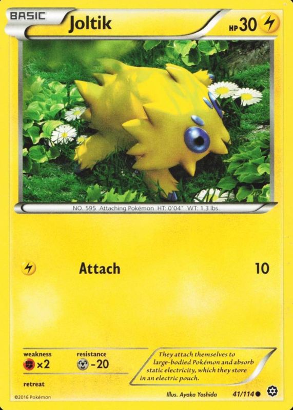 The Joltik 2016 XY: Steam Siege #041/114 Base card in Raw TCG (Lightly Played) condition has not changed in price in the last 30 days and was last sold for $1.79 .